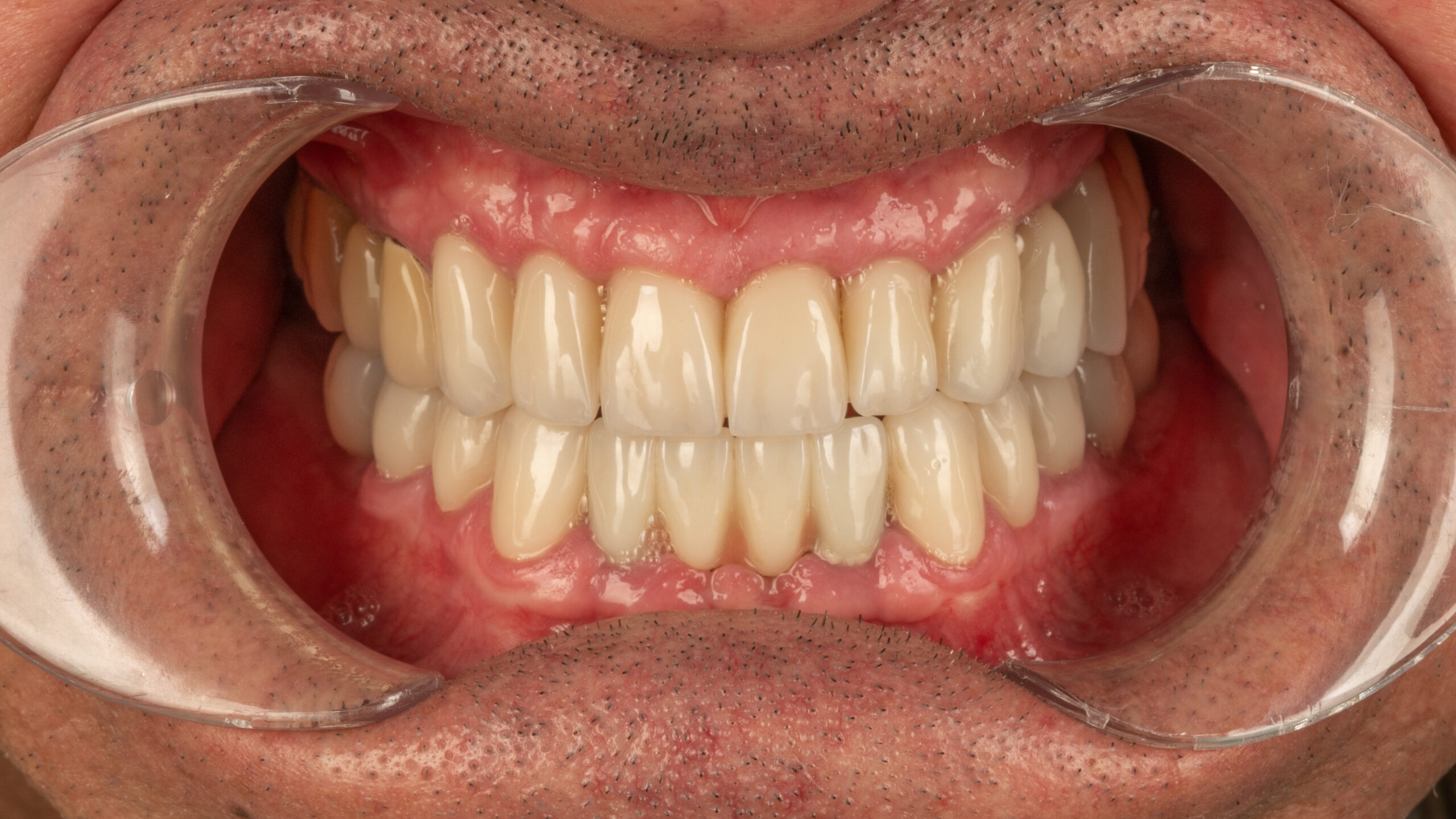Coroana este fixată pe dinte, ajustată pentru a se potrivi perfect și polizată pentru confort maxim.